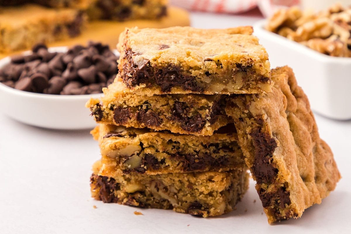 Store: Keep these chocolate chip cookie bars in an airtight container at room temperature for up to 3 days. Place wax paper or parchment between layers if you need to stack them to prevent sticking.