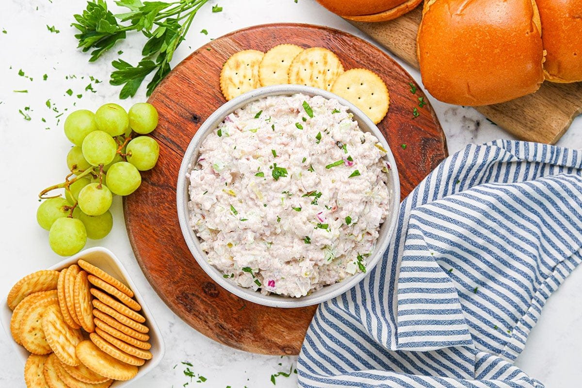 When you’re ready to serve, spread it on buns, use it in wraps, or put it out with crackers.